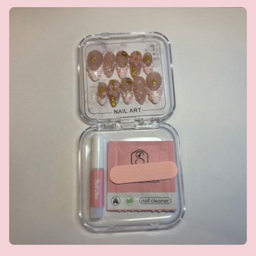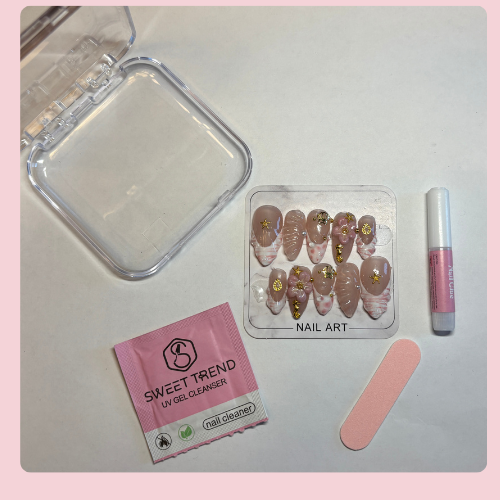 Un emballage pratique tout-en-un comprenant une lime à ongles, une lingette désinfectante et la colle — idéal à glisser dans ton sac pour toutes tes sorties.